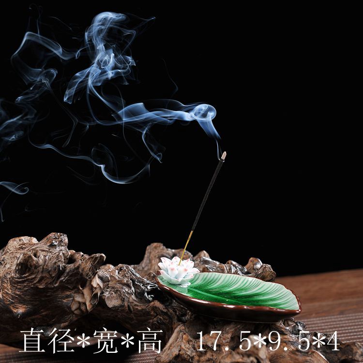 手工陶瓷香插 莲花香座 佛教薰香盘香炉 冰裂托盘