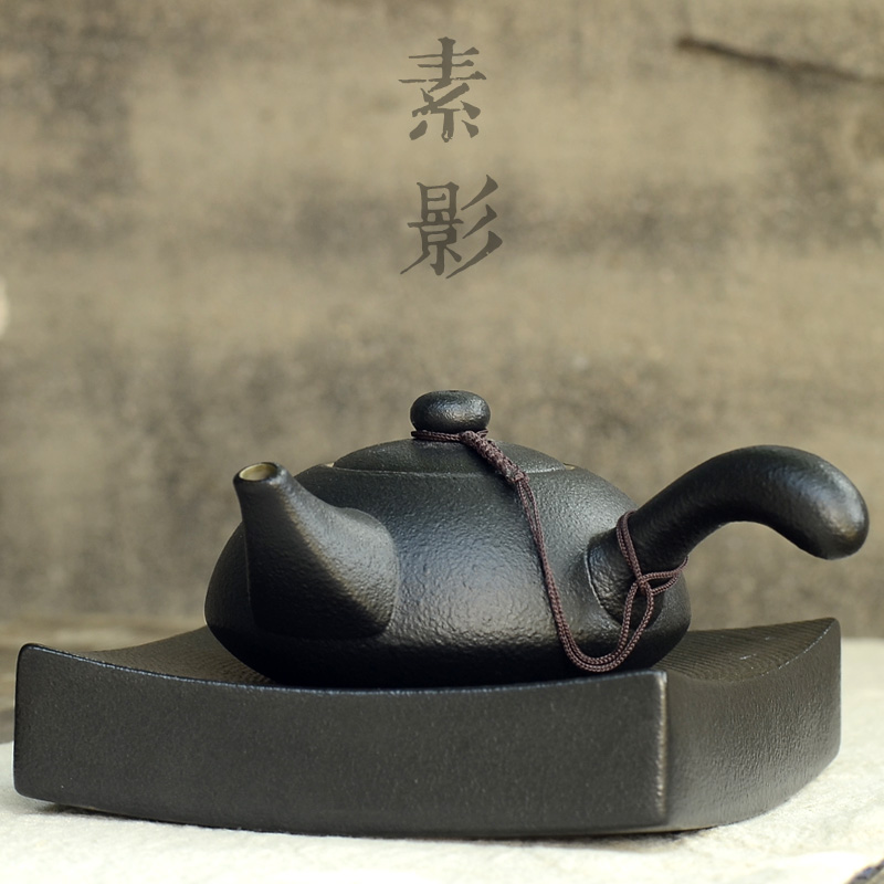 素影 粗陶侧把壶泡茶器仿古黑陶泥普洱台湾功夫茶具茶壶陶瓷新款