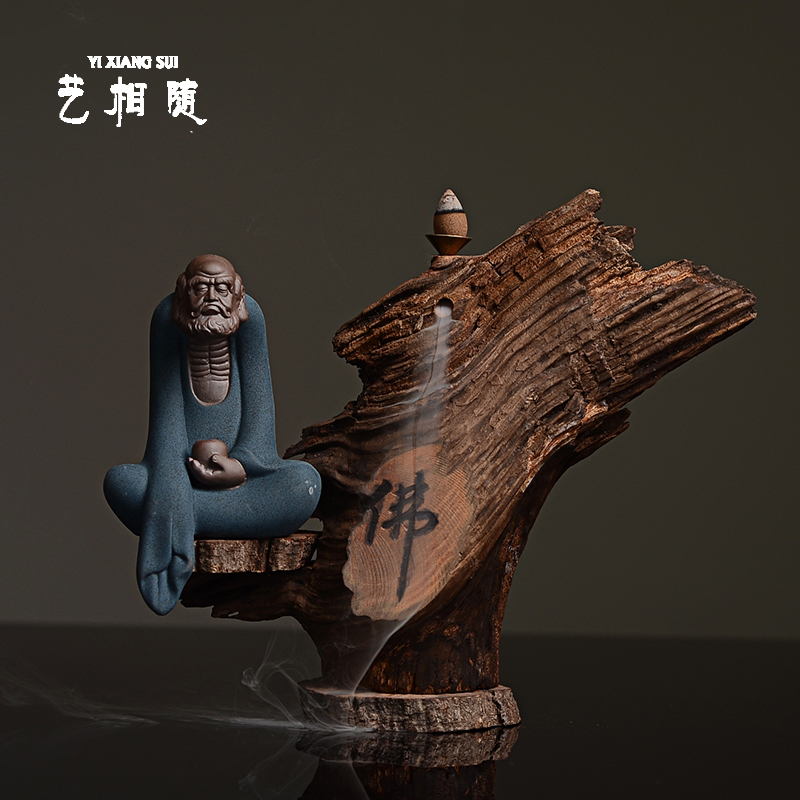 艺相随 天然根雕陶瓷底座茶室书房摆件 木质熏香炉倒流香家居饰品
