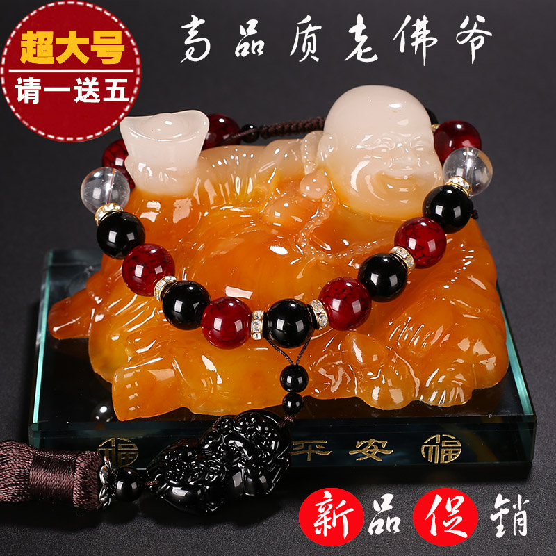 高档汽车摆件佛车内饰品香水座弥勒佛保平安车上装饰用品车载摆件